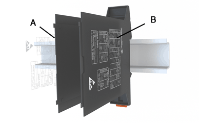 A nyomtatások és az A és B oldali kivágások az alapelem (alsó bepattintható láb) vázlatán látható pozíciótól függenek